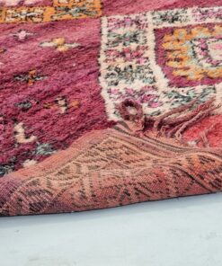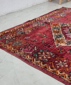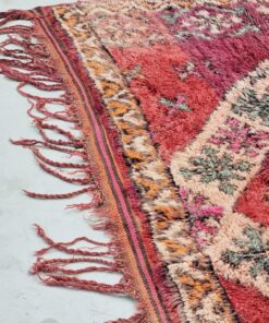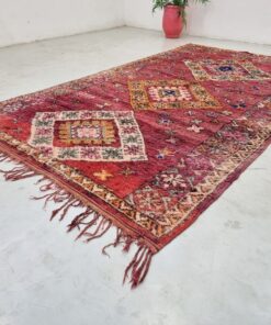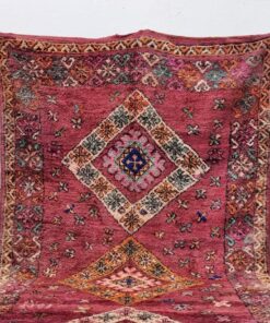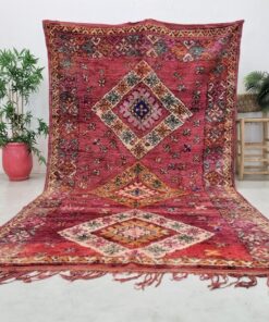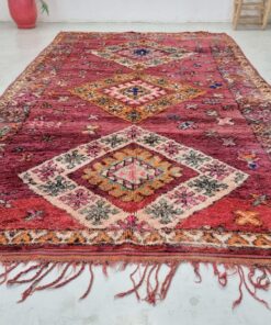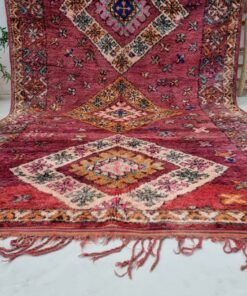 Beni M'Guild rugs, originating from the Beni M'Guild tribe in the Middle Atlas Mountains of Morocco, are striking examples of traditional Berber craftsmanship. These handwoven rugs are characterized by their deep, bold colors, intricate geometric patterns, and the use of symbolic motifs that convey the tribe's cultural stories. Often featuring a central composition surrounded by borders, Beni M'Guild rugs showcase the weaver's artistry and attention to detail. With a plush pile and a blend of rich, earthy tones, these rugs not only add warmth and texture to a space but also serve as timeless pieces that embody the heritage and creativity of the Beni M'Guild tribe.