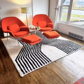 Purchased item: TAIBA – Beni Ourain Striped Rug – White & Black Custom Moroccan Rug