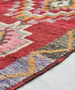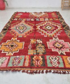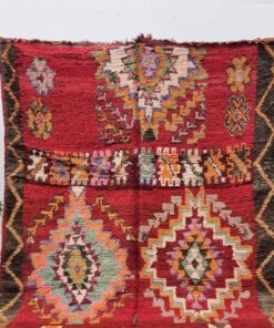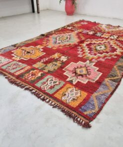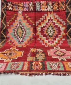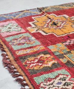Beni M'Guild rugs, originating from the Beni M'Guild tribe in the Middle Atlas Mountains of Morocco, are striking examples of traditional Berber craftsmanship. These handwoven rugs are characterized by their deep, bold colors, intricate geometric patterns, and the use of symbolic motifs that convey the tribe's cultural stories. Often featuring a central composition surrounded by borders, Beni M'Guild rugs showcase the weaver's artistry and attention to detail. With a plush pile and a blend of rich, earthy tones, these rugs not only add warmth and texture to a space but also serve as timeless pieces that embody the heritage and creativity of the Beni M'Guild tribe.