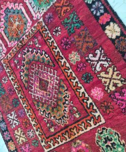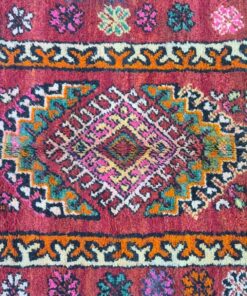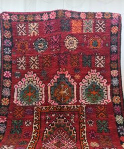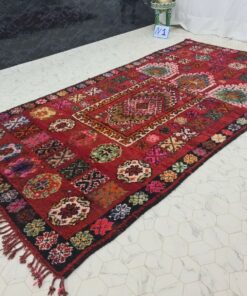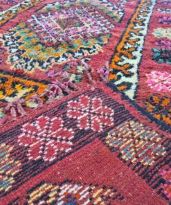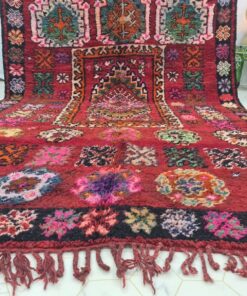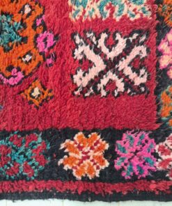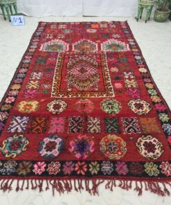 Beni M'Guild rugs, originating from the Beni M'Guild tribe in the Middle Atlas Mountains of Morocco, are striking examples of traditional Berber craftsmanship. These handwoven rugs are characterized by their deep, bold colors, intricate geometric patterns, and the use of symbolic motifs that convey the tribe's cultural stories. Often featuring a central composition surrounded by borders, Beni M'Guild rugs showcase the weaver's artistry and attention to detail. With a plush pile and a blend of rich, earthy tones, these rugs not only add warmth and texture to a space but also serve as timeless pieces that embody the heritage and creativity of the Beni M'Guild tribe.