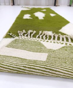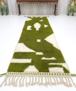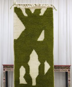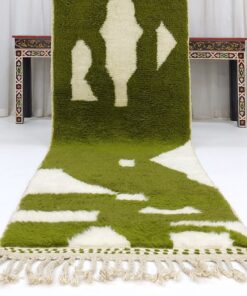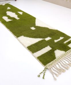 1 review for KIRAN – Beni Ourain Runner Rug – Abstract Custom Runner Green & White Rug