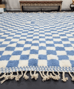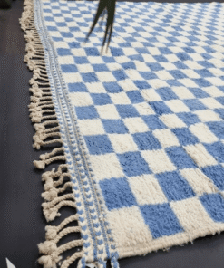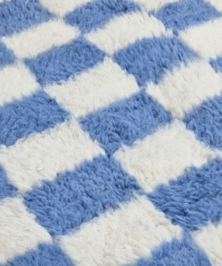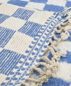 87 reviews for LAIQA – White and Blue Rug – Moroccan Beni Ourain Checkered Carpet