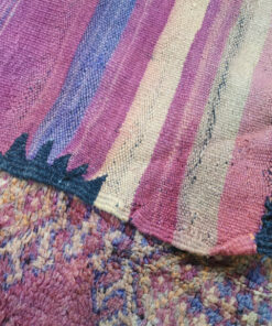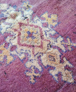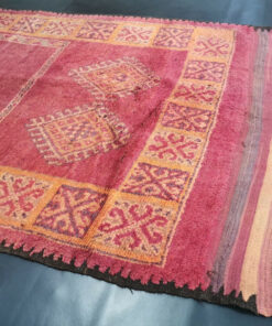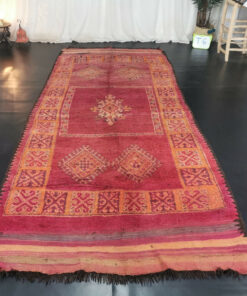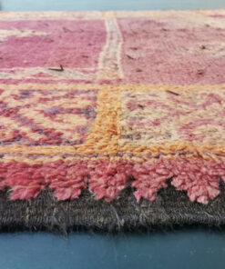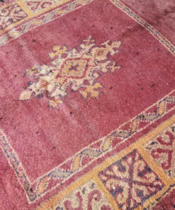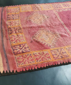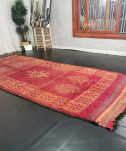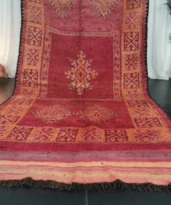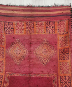 Beni M'Guild rugs, originating from the Beni M'Guild tribe in the Middle Atlas Mountains of Morocco, are striking examples of traditional Berber craftsmanship. These handwoven rugs are characterized by their deep, bold colors, intricate geometric patterns, and the use of symbolic motifs that convey the tribe's cultural stories. Often featuring a central composition surrounded by borders, Beni M'Guild rugs showcase the weaver's artistry and attention to detail. With a plush pile and a blend of rich, earthy tones, these rugs not only add warmth and texture to a space but also serve as timeless pieces that embody the heritage and creativity of the Beni M'Guild tribe.