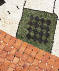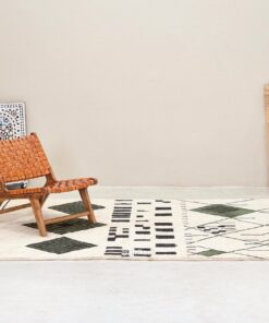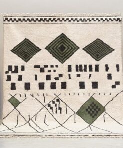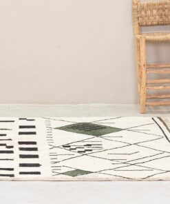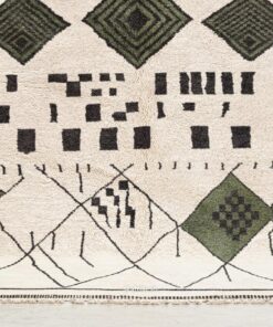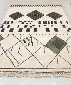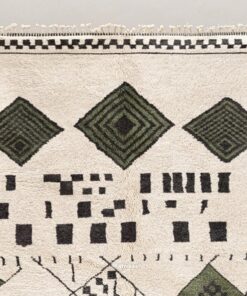 Laleh– Moroccan Beni Ourain Rug Green and White – Custom Geometric Berber Rug