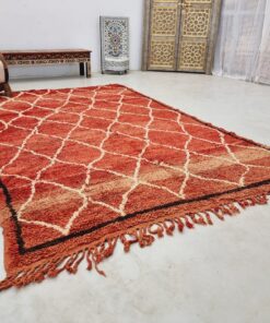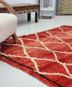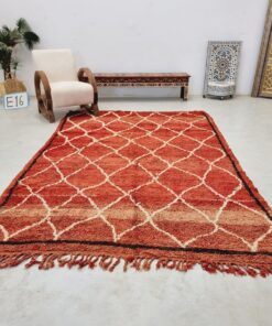 Beni M'Guild rugs, originating from the Beni M'Guild tribe in the Middle Atlas Mountains of Morocco, are striking examples of traditional Berber craftsmanship. These handwoven rugs are characterized by their deep, bold colors, intricate geometric patterns, and the use of symbolic motifs that convey the tribe's cultural stories. Often featuring a central composition surrounded by borders, Beni M'Guild rugs showcase the weaver's artistry and attention to detail. With a plush pile and a blend of rich, earthy tones, these rugs not only add warmth and texture to a space but also serve as timeless pieces that embody the heritage and creativity of the Beni M'Guild tribe.