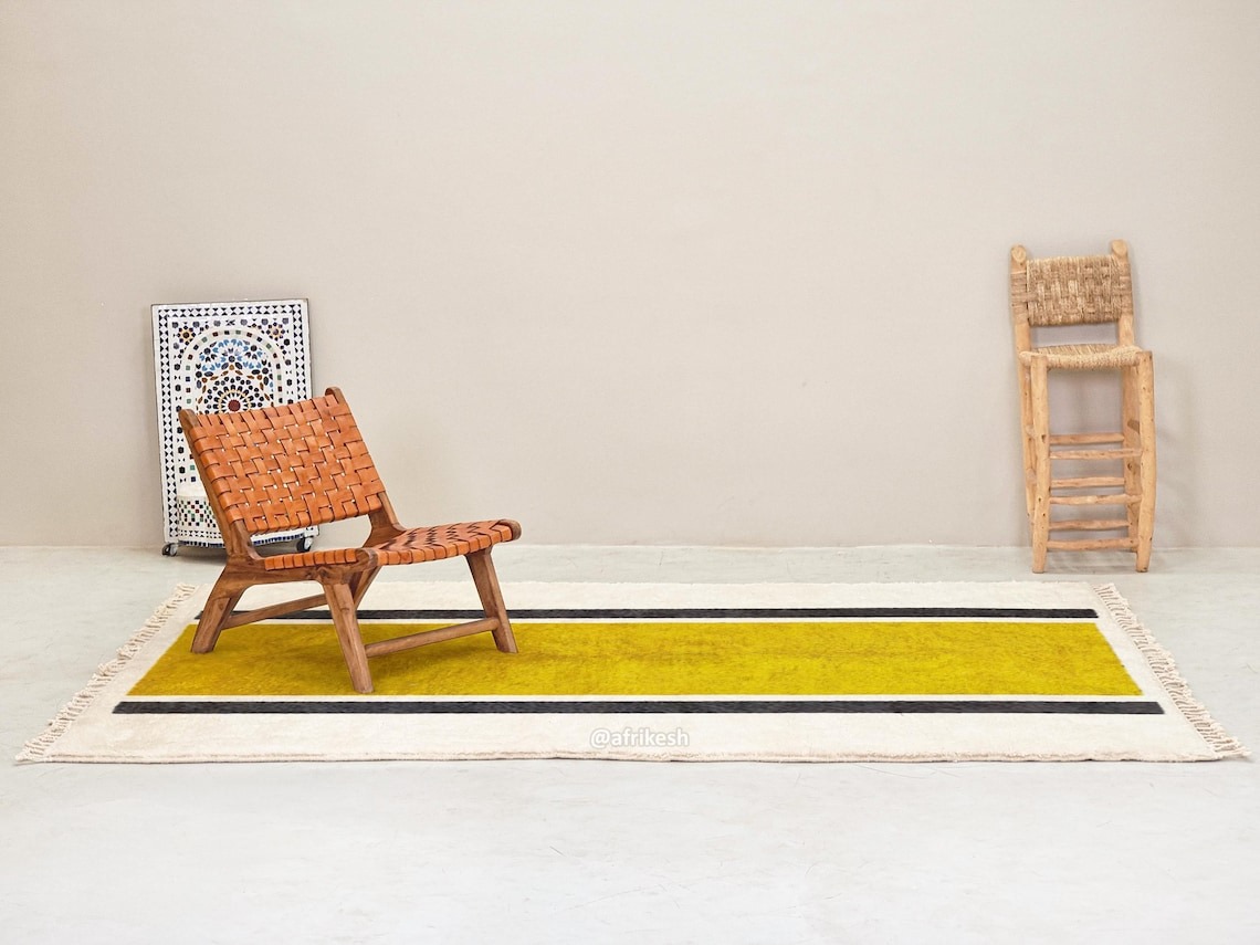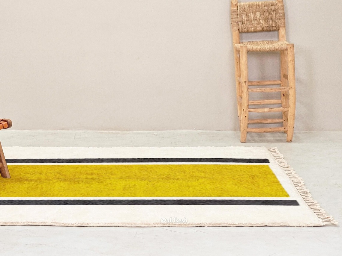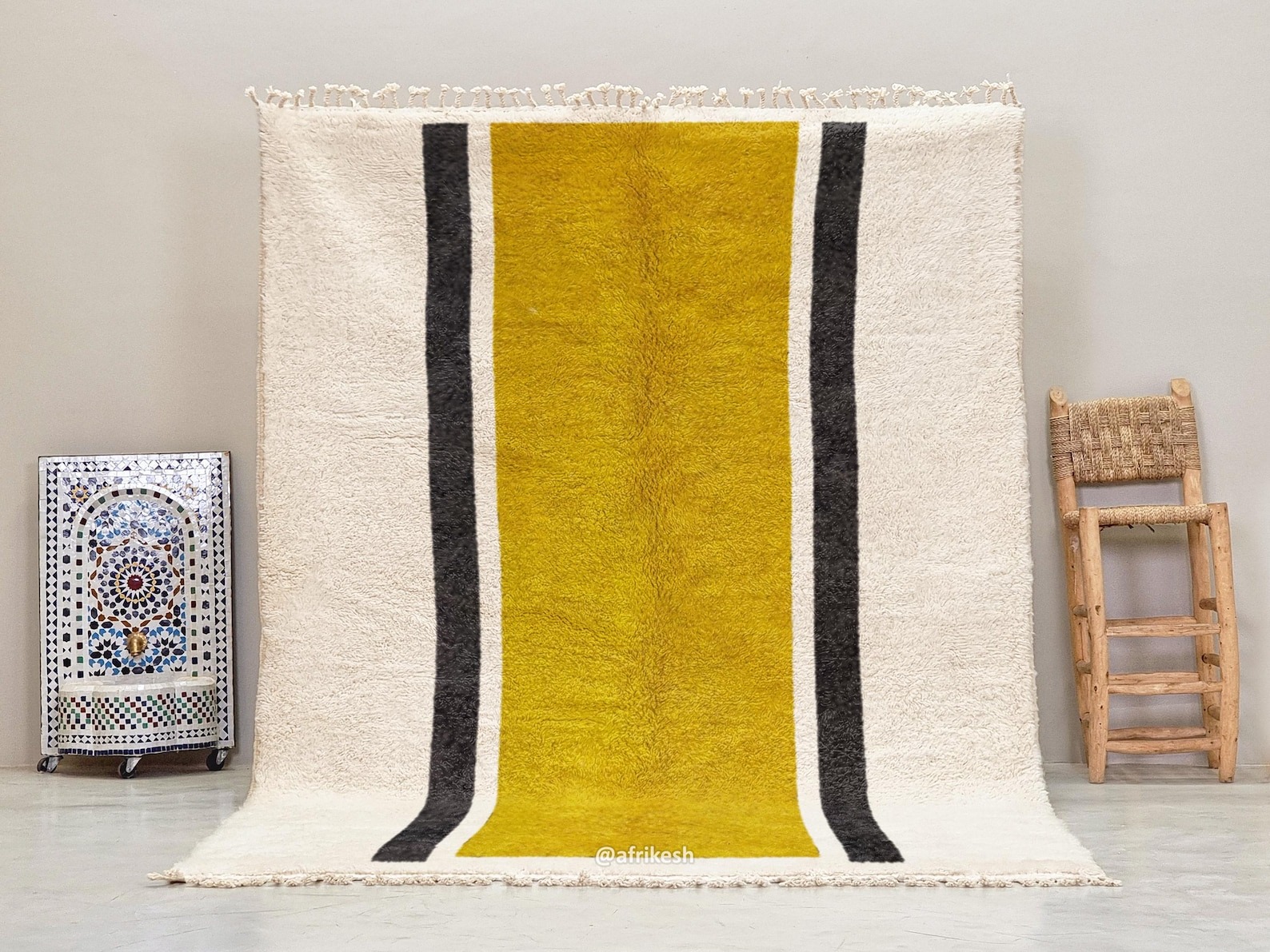 Yellow & White Moroccan Carpet– Beni Ourain Custom Geometric Rug