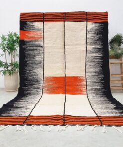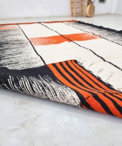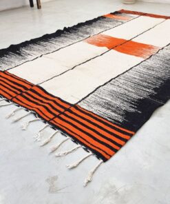 Orange & Black Moroccan Rug – Berber Kilim Striped Rug 6×10