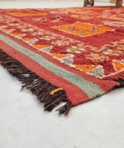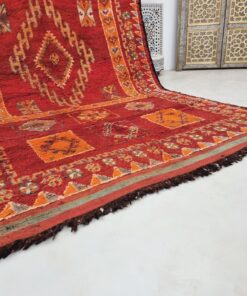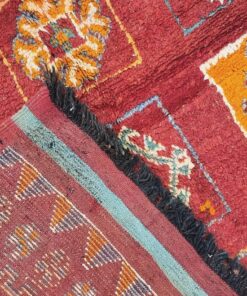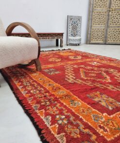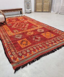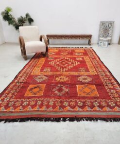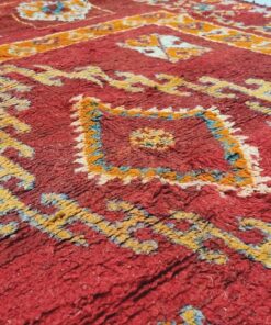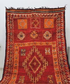 Beni M'Guild rugs, originating from the Beni M'Guild tribe in the Middle Atlas Mountains of Morocco, are striking examples of traditional Berber craftsmanship. These handwoven rugs are characterized by their deep, bold colors, intricate geometric patterns, and the use of symbolic motifs that convey the tribe's cultural stories. Often featuring a central composition surrounded by borders, Beni M'Guild rugs showcase the weaver's artistry and attention to detail. With a plush pile and a blend of rich, earthy tones, these rugs not only add warmth and texture to a space but also serve as timeless pieces that embody the heritage and creativity of the Beni M'Guild tribe.