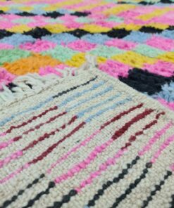 Boujaad rugs, originating from the eponymous region in the Middle Atlas Mountains of Morocco, are captivating expressions of traditional craftsmanship. Known for their vibrant colors, intricate geometric patterns, and a distinctive use of red and pink hues, Boujaad rugs exude warmth and cultural richness. These handwoven gems often feature asymmetrical designs, reflecting the weaver's personal creativity within the framework of age-old techniques. A Boujaad rug is not merely a floor covering; it's a testament to the artisan's skill, the region's heritage, and the vibrant spirit of Moroccan craftsmanship.