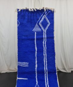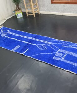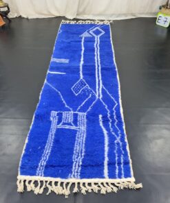 Handmade Beni Ourain Rug – Blue & White Runner 3×10