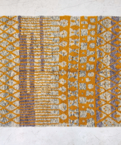 Lustia – Berber Beni Ouarain Mustard and Blue Rug – Custom Geometric Rug