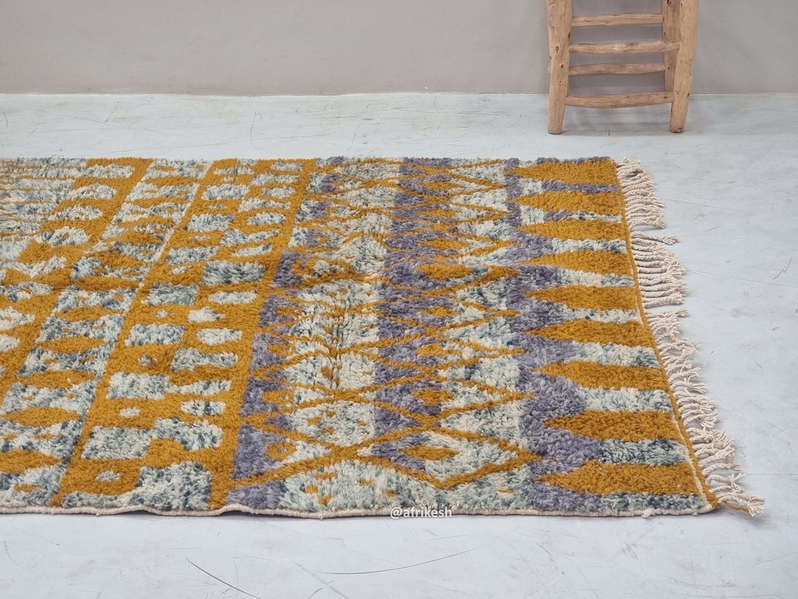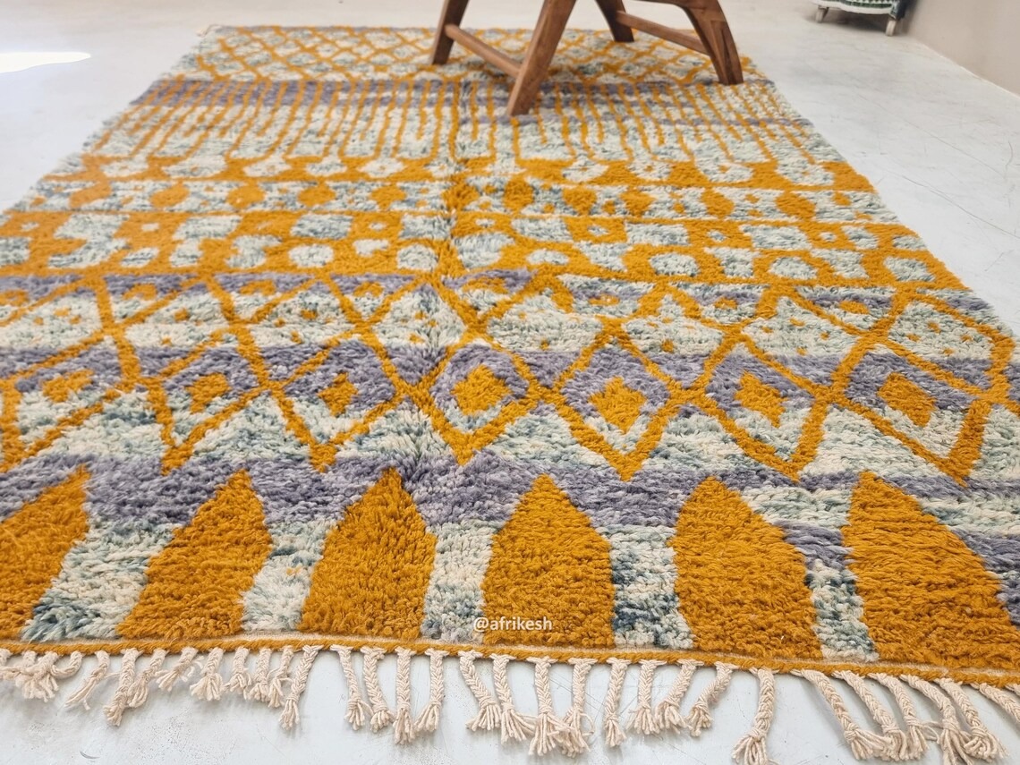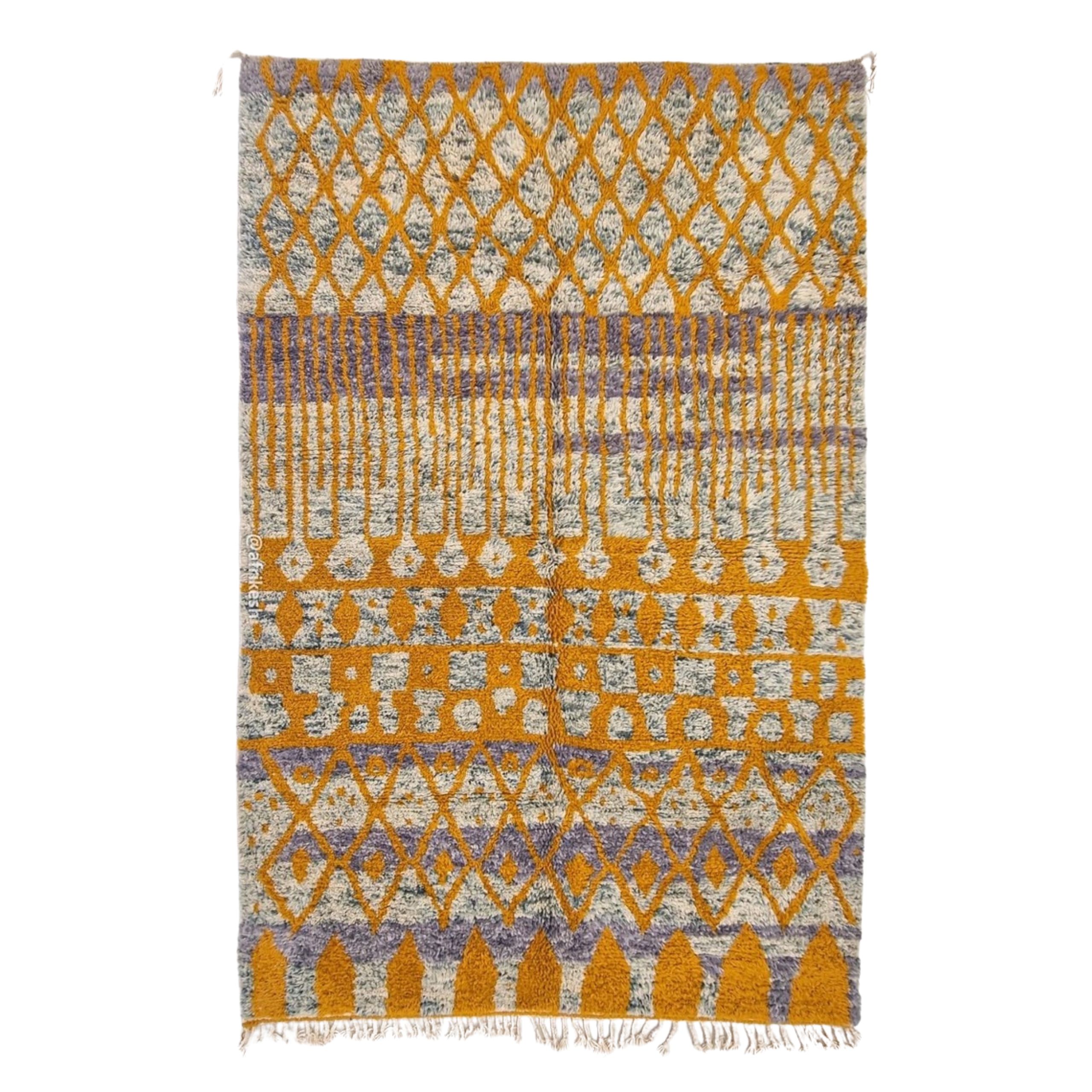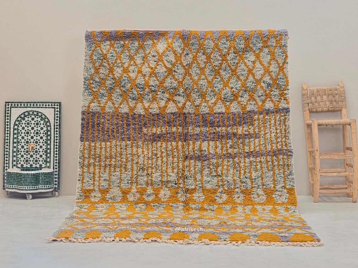 Lustia – Mustard moroccan rug – Custom Geometric Mustard and Blue Rug