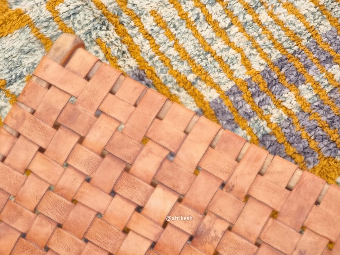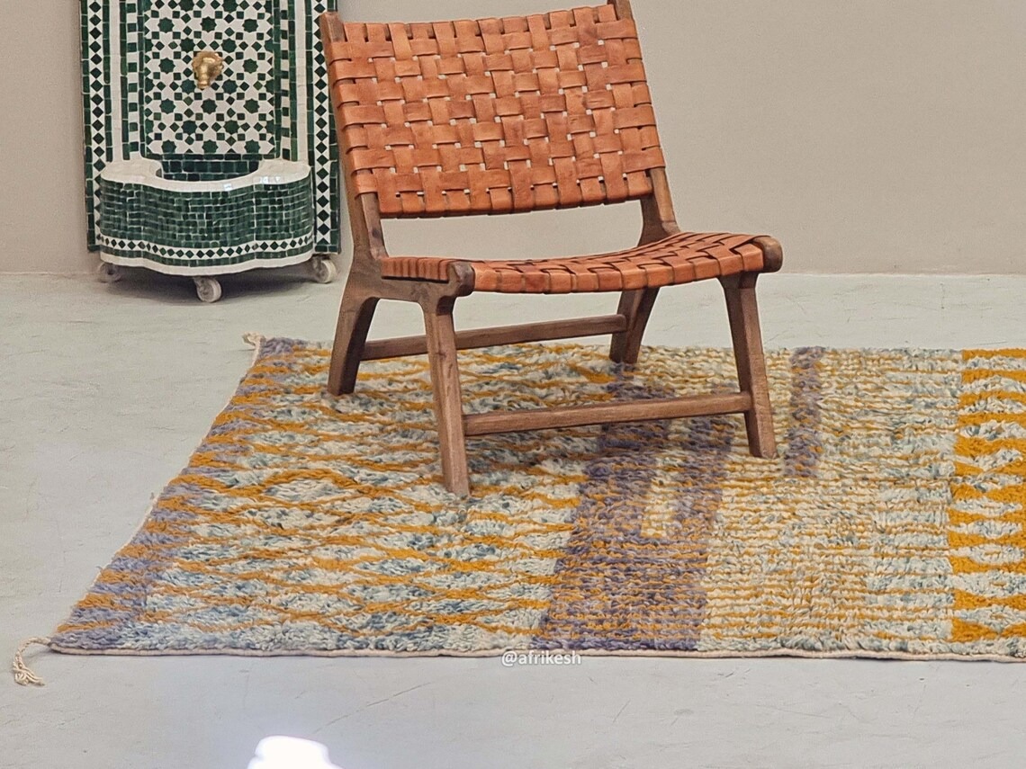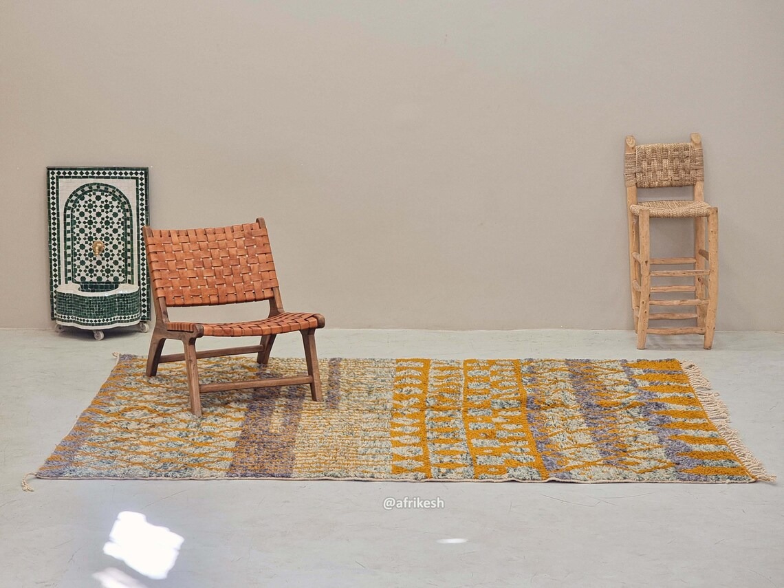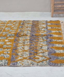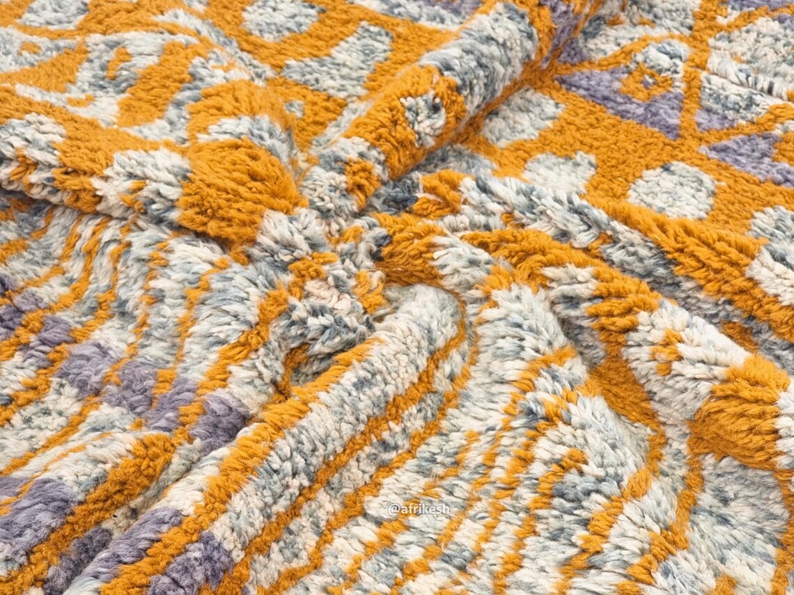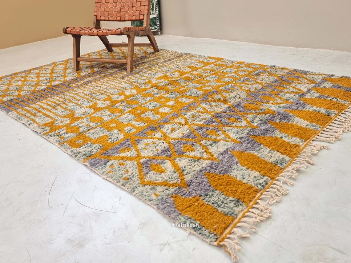 Lustia – Mustard moroccan rug – Custom Geometric Mustard and Blue Rug