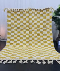 93 reviews for MAGHA – Yellow And White Rug – Custom Beni Ourain Checkered Carpet