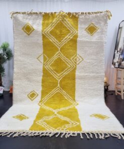 Yellow And White Rug – Handmade Beni Ourain Geometric Carpet