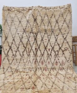 Beni M'Guild rugs, originating from the Beni M'Guild tribe in the Middle Atlas Mountains of Morocco, are striking examples of traditional Berber craftsmanship. These handwoven rugs are characterized by their deep, bold colors, intricate geometric patterns, and the use of symbolic motifs that convey the tribe's cultural stories. Often featuring a central composition surrounded by borders, Beni M'Guild rugs showcase the weaver's artistry and attention to detail. With a plush pile and a blend of rich, earthy tones, these rugs not only add warmth and texture to a space but also serve as timeless pieces that embody the heritage and creativity of the Beni M'Guild tribe.