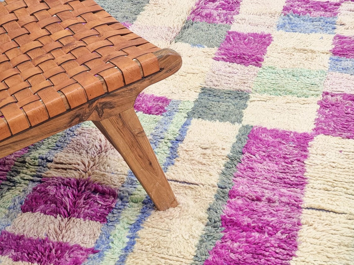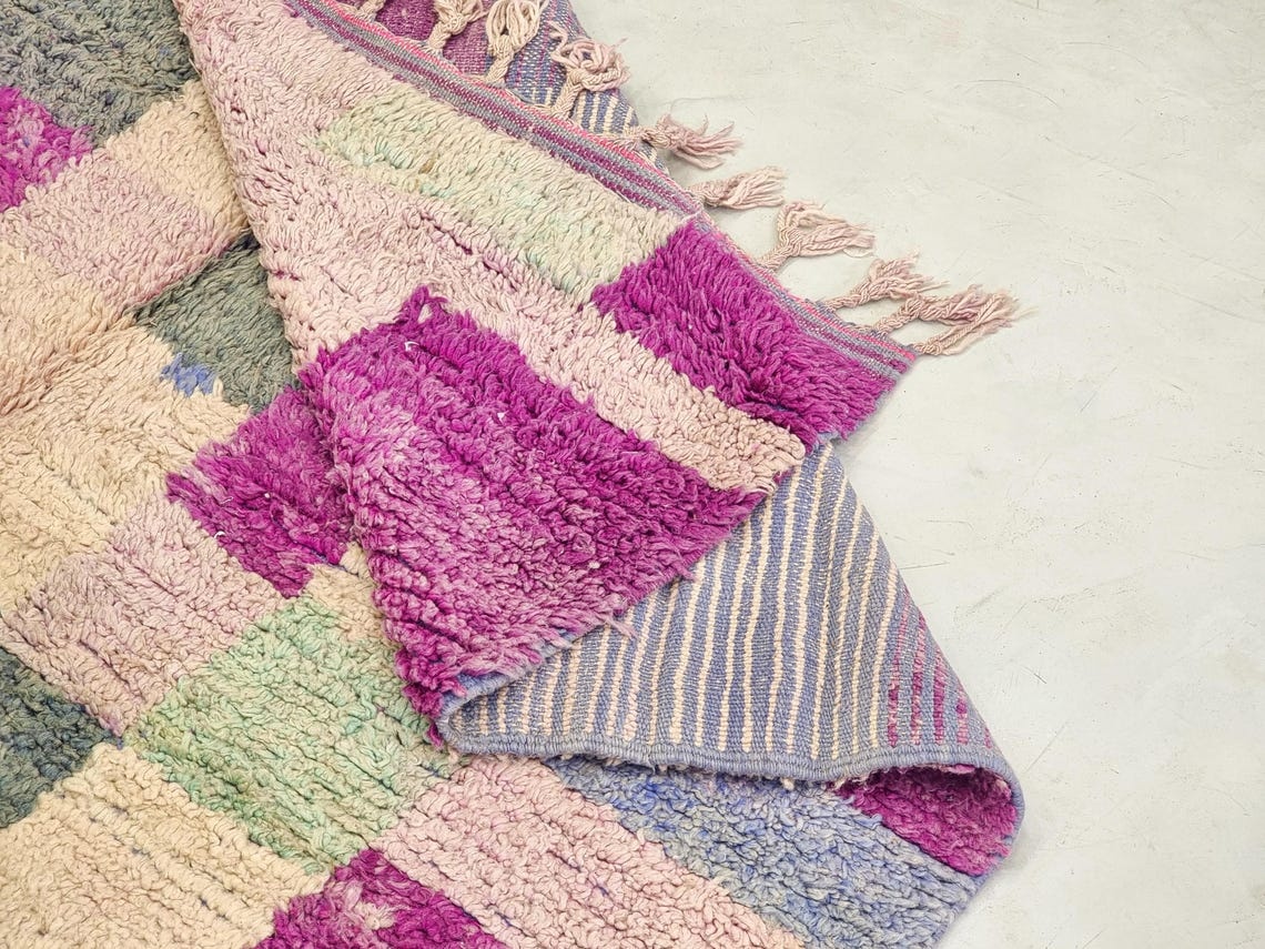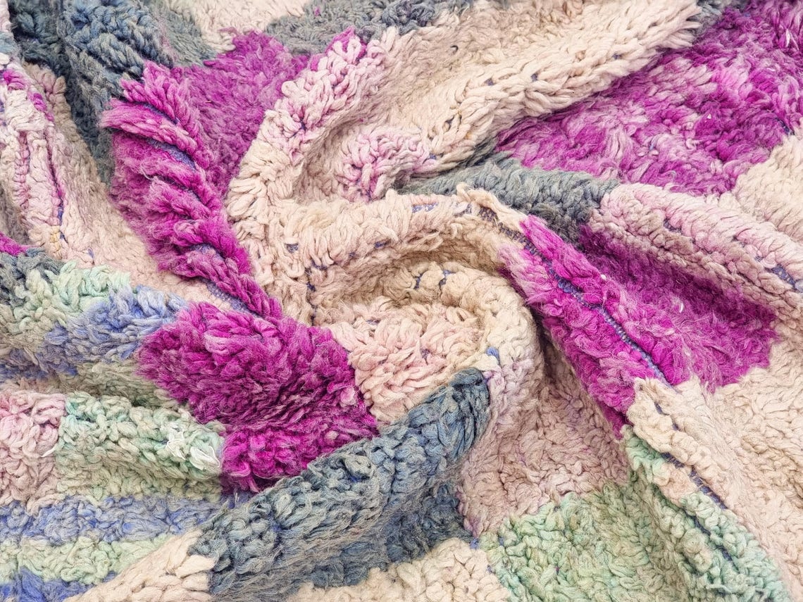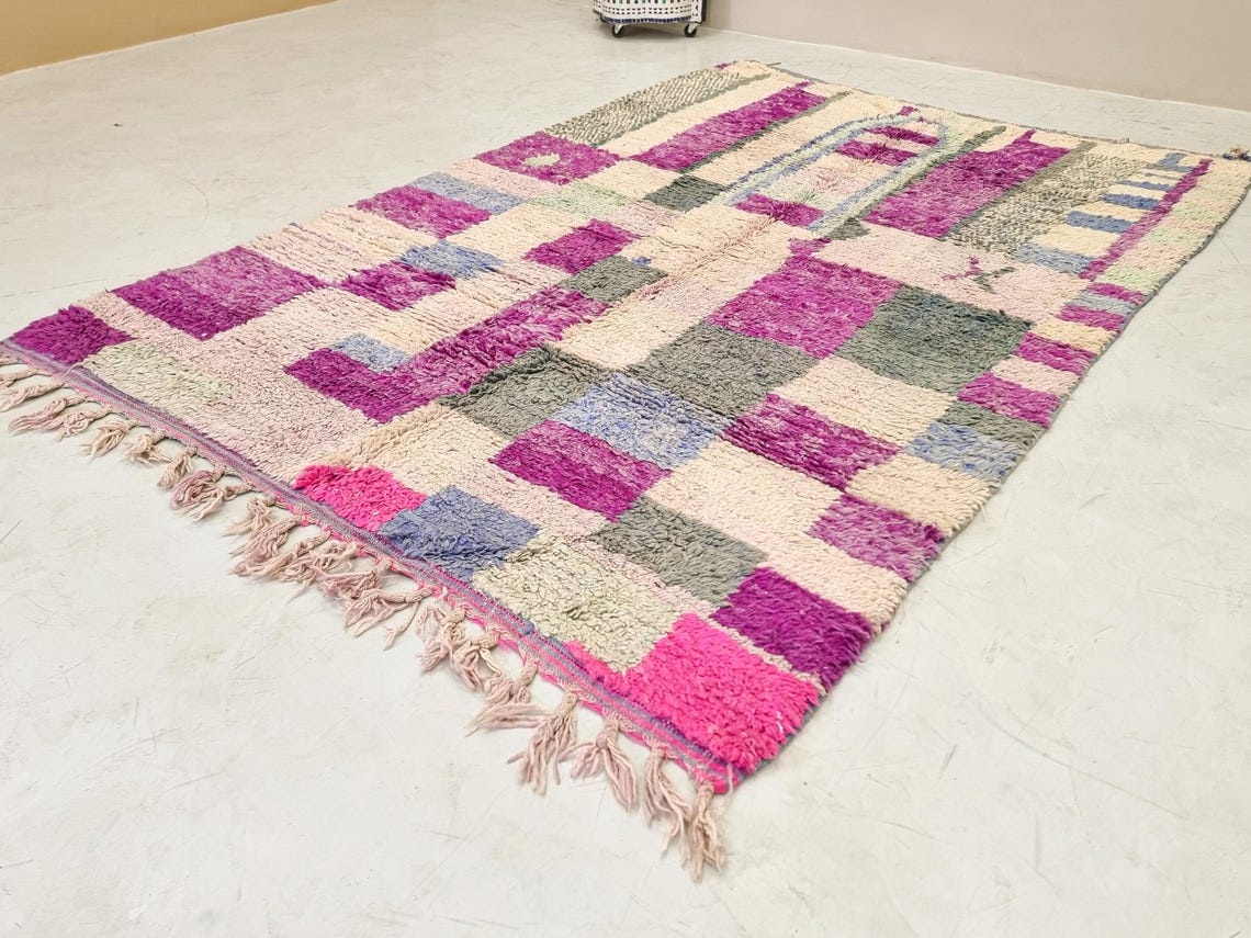Boujaad rugs, originating from the eponymous region in the Middle Atlas Mountains of Morocco, are captivating expressions of traditional craftsmanship. Known for their vibrant colors, intricate geometric patterns, and a distinctive use of red and pink hues, Boujaad rugs exude warmth and cultural richness. These handwoven gems often feature asymmetrical designs, reflecting the weaver's personal creativity within the framework of age-old techniques. A Boujaad rug is not merely a floor covering; it's a testament to the artisan's skill, the region's heritage, and the vibrant spirit of Moroccan craftsmanship.