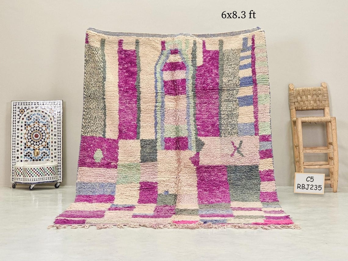 Cream and Purple Carpet – Boujaad Moroccan Rug 6×8