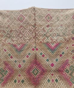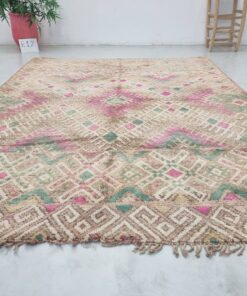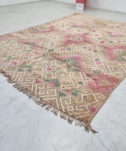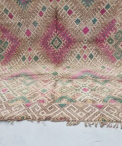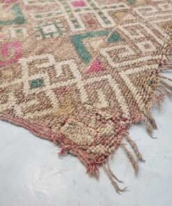 Beni M'Guild rugs, originating from the Beni M'Guild tribe in the Middle Atlas Mountains of Morocco, are striking examples of traditional Berber craftsmanship. These handwoven rugs are characterized by their deep, bold colors, intricate geometric patterns, and the use of symbolic motifs that convey the tribe's cultural stories. Often featuring a central composition surrounded by borders, Beni M'Guild rugs showcase the weaver's artistry and attention to detail. With a plush pile and a blend of rich, earthy tones, these rugs not only add warmth and texture to a space but also serve as timeless pieces that embody the heritage and creativity of the Beni M'Guild tribe.