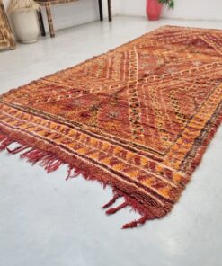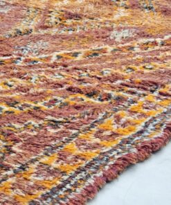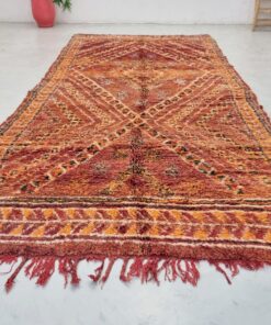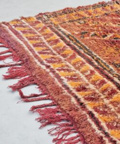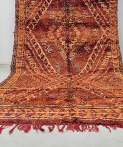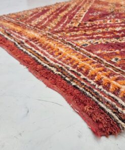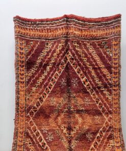 Beni M'Guild rugs, originating from the Beni M'Guild tribe in the Middle Atlas Mountains of Morocco, are striking examples of traditional Berber craftsmanship. These handwoven rugs are characterized by their deep, bold colors, intricate geometric patterns, and the use of symbolic motifs that convey the tribe's cultural stories. Often featuring a central composition surrounded by borders, Beni M'Guild rugs showcase the weaver's artistry and attention to detail. With a plush pile and a blend of rich, earthy tones, these rugs not only add warmth and texture to a space but also serve as timeless pieces that embody the heritage and creativity of the Beni M'Guild tribe.