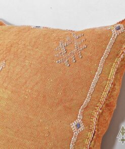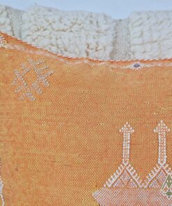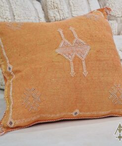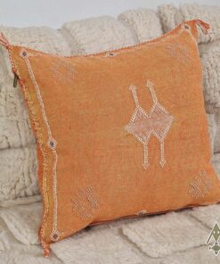 This cactus silk pillow was handwoven from silk from the sabra cactus plant. Each pillow is unique with its Berber symbols and is one of a kind.