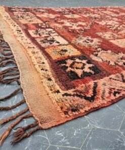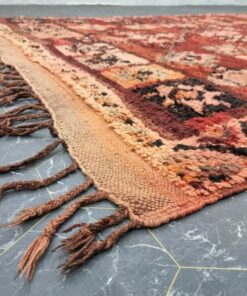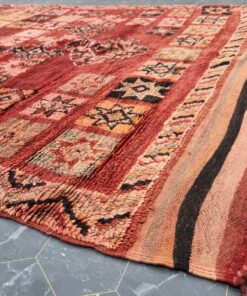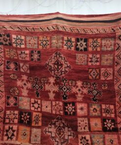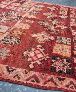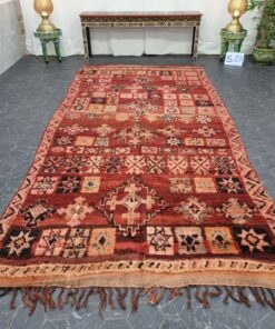 Beni M'Guild rugs, originating from the Beni M'Guild tribe in the Middle Atlas Mountains of Morocco, are striking examples of traditional Berber craftsmanship. These handwoven rugs are characterized by their deep, bold colors, intricate geometric patterns, and the use of symbolic motifs that convey the tribe's cultural stories. Often featuring a central composition surrounded by borders, Beni M'Guild rugs showcase the weaver's artistry and attention to detail. With a plush pile and a blend of rich, earthy tones, these rugs not only add warmth and texture to a space but also serve as timeless pieces that embody the heritage and creativity of the Beni M'Guild tribe.