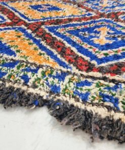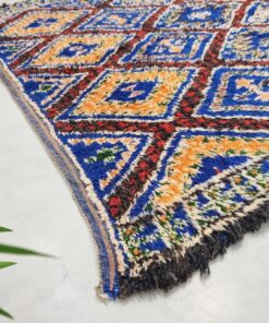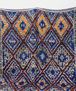 Beni M'Guild rugs, originating from the Beni M'Guild tribe in the Middle Atlas Mountains of Morocco, are striking examples of traditional Berber craftsmanship. These handwoven rugs are characterized by their deep, bold colors, intricate geometric patterns, and the use of symbolic motifs that convey the tribe's cultural stories. Often featuring a central composition surrounded by borders, Beni M'Guild rugs showcase the weaver's artistry and attention to detail. With a plush pile and a blend of rich, earthy tones, these rugs not only add warmth and texture to a space but also serve as timeless pieces that embody the heritage and creativity of the Beni M'Guild tribe.