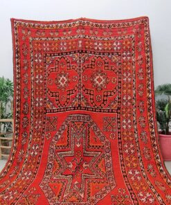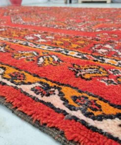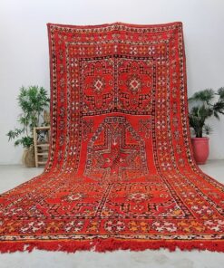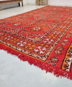 Beni M'Guild rugs, originating from the Beni M'Guild tribe in the Middle Atlas Mountains of Morocco, are striking examples of traditional Berber craftsmanship. These handwoven rugs are characterized by their deep, bold colors, intricate geometric patterns, and the use of symbolic motifs that convey the tribe's cultural stories. Often featuring a central composition surrounded by borders, Beni M'Guild rugs showcase the weaver's artistry and attention to detail. With a plush pile and a blend of rich, earthy tones, these rugs not only add warmth and texture to a space but also serve as timeless pieces that embody the heritage and creativity of the Beni M'Guild tribe.