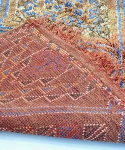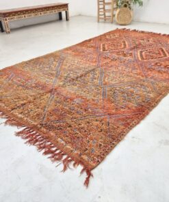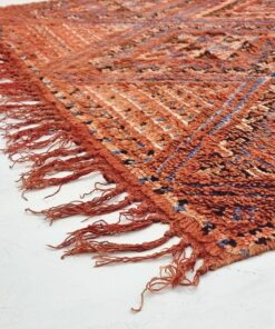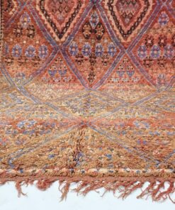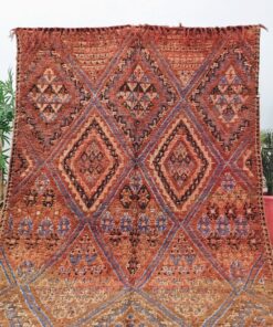 Beni M'Guild rugs, originating from the Beni M'Guild tribe in the Middle Atlas Mountains of Morocco, are striking examples of traditional Berber craftsmanship. These handwoven rugs are characterized by their deep, bold colors, intricate geometric patterns, and the use of symbolic motifs that convey the tribe's cultural stories. Often featuring a central composition surrounded by borders, Beni M'Guild rugs showcase the weaver's artistry and attention to detail. With a plush pile and a blend of rich, earthy tones, these rugs not only add warmth and texture to a space but also serve as timeless pieces that embody the heritage and creativity of the Beni M'Guild tribe.