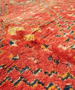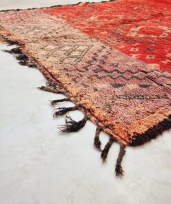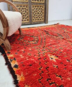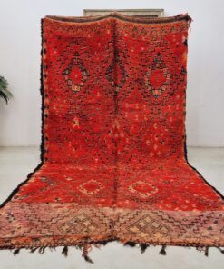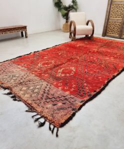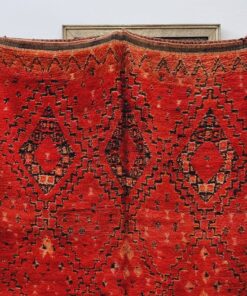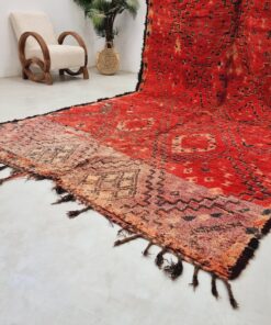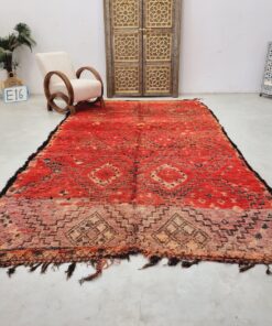 Beni M'Guild rugs, originating from the Beni M'Guild tribe in the Middle Atlas Mountains of Morocco, are striking examples of traditional Berber craftsmanship. These handwoven rugs are characterized by their deep, bold colors, intricate geometric patterns, and the use of symbolic motifs that convey the tribe's cultural stories. Often featuring a central composition surrounded by borders, Beni M'Guild rugs showcase the weaver's artistry and attention to detail. With a plush pile and a blend of rich, earthy tones, these rugs not only add warmth and texture to a space but also serve as timeless pieces that embody the heritage and creativity of the Beni M'Guild tribe.