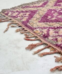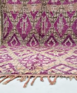 Beni M'Guild rugs, originating from the Beni M'Guild tribe in the Middle Atlas Mountains of Morocco, are striking examples of traditional Berber craftsmanship. These handwoven rugs are characterized by their deep, bold colors, intricate geometric patterns, and the use of symbolic motifs that convey the tribe's cultural stories. Often featuring a central composition surrounded by borders, Beni M'Guild rugs showcase the weaver's artistry and attention to detail. With a plush pile and a blend of rich, earthy tones, these rugs not only add warmth and texture to a space but also serve as timeless pieces that embody the heritage and creativity of the Beni M'Guild tribe.