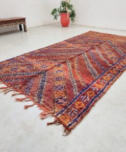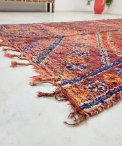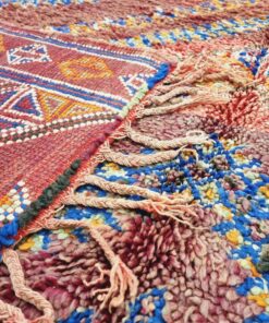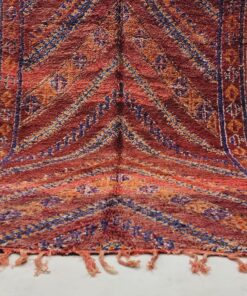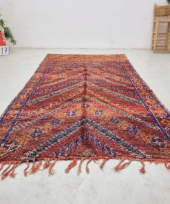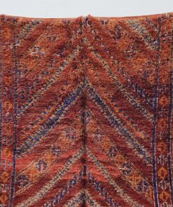 Beni M'Guild rugs, originating from the Beni M'Guild tribe in the Middle Atlas Mountains of Morocco, are striking examples of traditional Berber craftsmanship. These handwoven rugs are characterized by their deep, bold colors, intricate geometric patterns, and the use of symbolic motifs that convey the tribe's cultural stories. Often featuring a central composition surrounded by borders, Beni M'Guild rugs showcase the weaver's artistry and attention to detail. With a plush pile and a blend of rich, earthy tones, these rugs not only add warmth and texture to a space but also serve as timeless pieces that embody the heritage and creativity of the Beni M'Guild tribe.