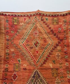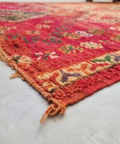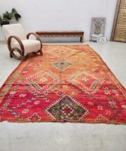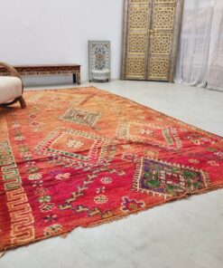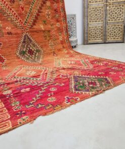 Beni M'Guild rugs, originating from the Beni M'Guild tribe in the Middle Atlas Mountains of Morocco, are striking examples of traditional Berber craftsmanship. These handwoven rugs are characterized by their deep, bold colors, intricate geometric patterns, and the use of symbolic motifs that convey the tribe's cultural stories. Often featuring a central composition surrounded by borders, Beni M'Guild rugs showcase the weaver's artistry and attention to detail. With a plush pile and a blend of rich, earthy tones, these rugs not only add warmth and texture to a space but also serve as timeless pieces that embody the heritage and creativity of the Beni M'Guild tribe.