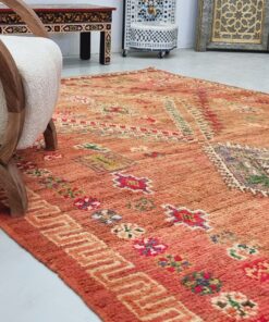 Faded Orange And Red Beni M’Guild Rug – Vintage Carpet 6×12