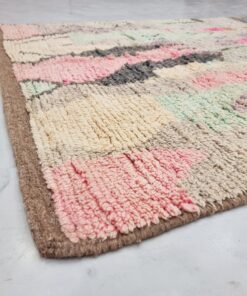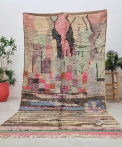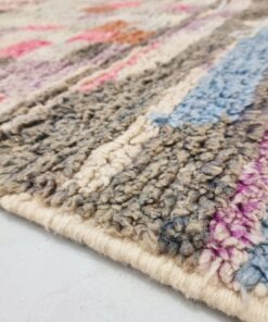 Beni M'Guild rugs, originating from the Beni M'Guild tribe in the Middle Atlas Mountains of Morocco, are striking examples of traditional Berber craftsmanship. These handwoven rugs are characterized by their deep, bold colors, intricate geometric patterns, and the use of symbolic motifs that convey the tribe's cultural stories. Often featuring a central composition surrounded by borders, Beni M'Guild rugs showcase the weaver's artistry and attention to detail. With a plush pile and a blend of rich, earthy tones, these rugs not only add warmth and texture to a space but also serve as timeless pieces that embody the heritage and creativity of the Beni M'Guild tribe.