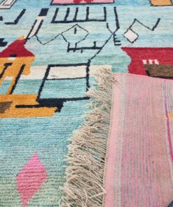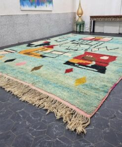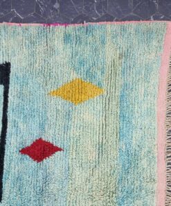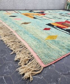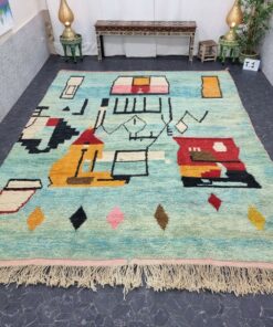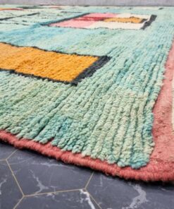 Beni M'Guild rugs, originating from the Beni M'Guild tribe in the Middle Atlas Mountains of Morocco, are striking examples of traditional Berber craftsmanship. These handwoven rugs are characterized by their deep, bold colors, intricate geometric patterns, and the use of symbolic motifs that convey the tribe's cultural stories. Often featuring a central composition surrounded by borders, Beni M'Guild rugs showcase the weaver's artistry and attention to detail. With a plush pile and a blend of rich, earthy tones, these rugs not only add warmth and texture to a space but also serve as timeless pieces that embody the heritage and creativity of the Beni M'Guild tribe.