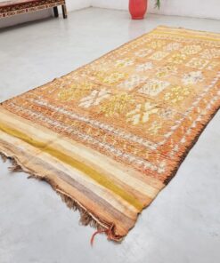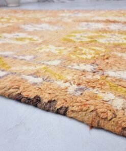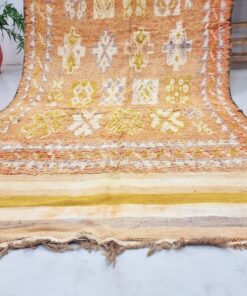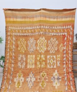 Beni M'Guild rugs, originating from the Beni M'Guild tribe in the Middle Atlas Mountains of Morocco, are striking examples of traditional Berber craftsmanship. These handwoven rugs are characterized by their deep, bold colors, intricate geometric patterns, and the use of symbolic motifs that convey the tribe's cultural stories. Often featuring a central composition surrounded by borders, Beni M'Guild rugs showcase the weaver's artistry and attention to detail. With a plush pile and a blend of rich, earthy tones, these rugs not only add warmth and texture to a space but also serve as timeless pieces that embody the heritage and creativity of the Beni M'Guild tribe.