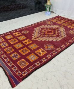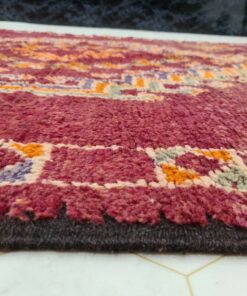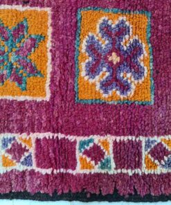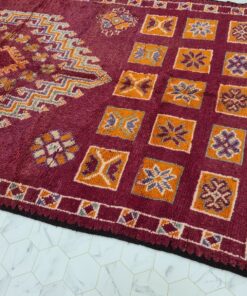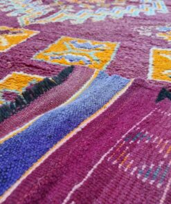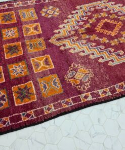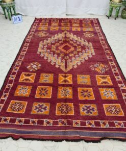 Beni M'Guild rugs, originating from the Beni M'Guild tribe in the Middle Atlas Mountains of Morocco, are striking examples of traditional Berber craftsmanship. These handwoven rugs are characterized by their deep, bold colors, intricate geometric patterns, and the use of symbolic motifs that convey the tribe's cultural stories. Often featuring a central composition surrounded by borders, Beni M'Guild rugs showcase the weaver's artistry and attention to detail. With a plush pile and a blend of rich, earthy tones, these rugs not only add warmth and texture to a space but also serve as timeless pieces that embody the heritage and creativity of the Beni M'Guild tribe.