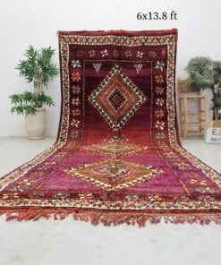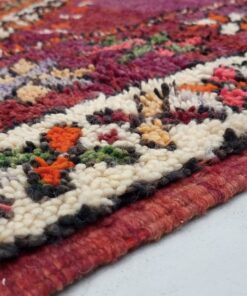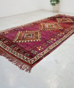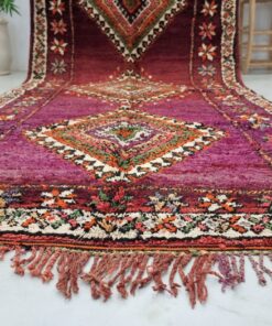 Beni M'Guild rugs, originating from the Beni M'Guild tribe in the Middle Atlas Mountains of Morocco, are striking examples of traditional Berber craftsmanship. These handwoven rugs are characterized by their deep, bold colors, intricate geometric patterns, and the use of symbolic motifs that convey the tribe's cultural stories. Often featuring a central composition surrounded by borders, Beni M'Guild rugs showcase the weaver's artistry and attention to detail. With a plush pile and a blend of rich, earthy tones, these rugs not only add warmth and texture to a space but also serve as timeless pieces that embody the heritage and creativity of the Beni M'Guild tribe.