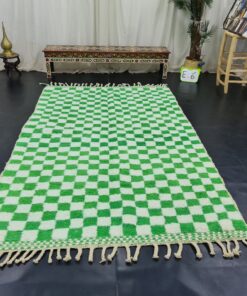 Green Checkered Rug – Moroccan Beni Ourain Carpet 6×9
