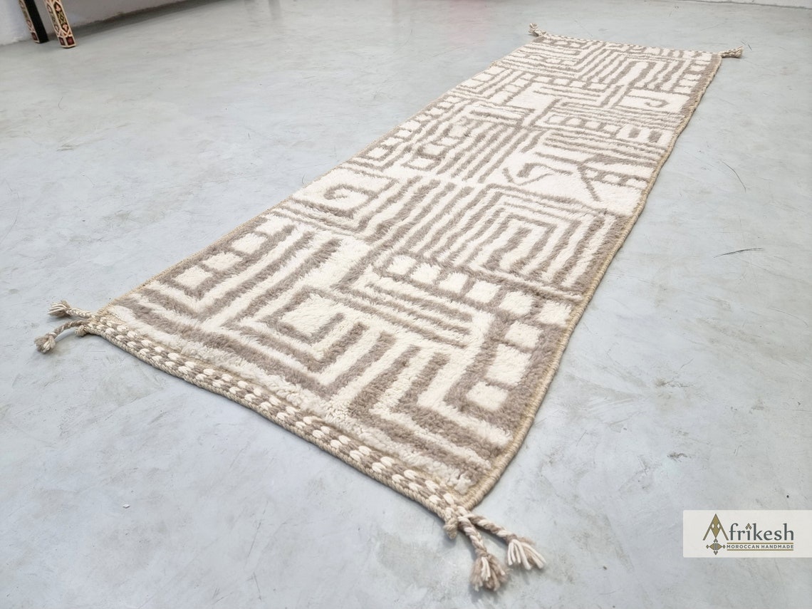 Gray and White Moroccan Rug – Beni Ourain Striped Runner