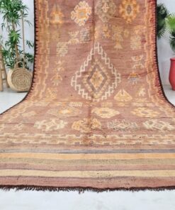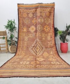 Beni M'Guild rugs, originating from the Beni M'Guild tribe in the Middle Atlas Mountains of Morocco, are striking examples of traditional Berber craftsmanship. These handwoven rugs are characterized by their deep, bold colors, intricate geometric patterns, and the use of symbolic motifs that convey the tribe's cultural stories. Often featuring a central composition surrounded by borders, Beni M'Guild rugs showcase the weaver's artistry and attention to detail. With a plush pile and a blend of rich, earthy tones, these rugs not only add warmth and texture to a space but also serve as timeless pieces that embody the heritage and creativity of the Beni M'Guild tribe.