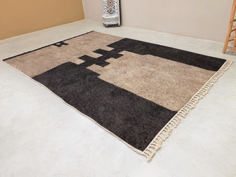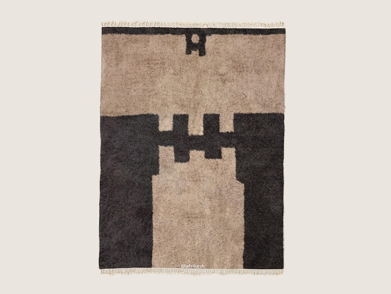 Beige And Black Rug – Beni Ourain Abstract Custom Rug