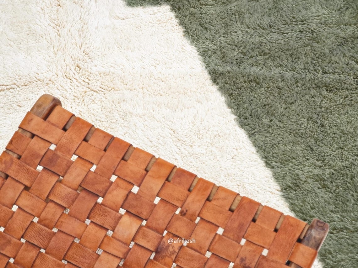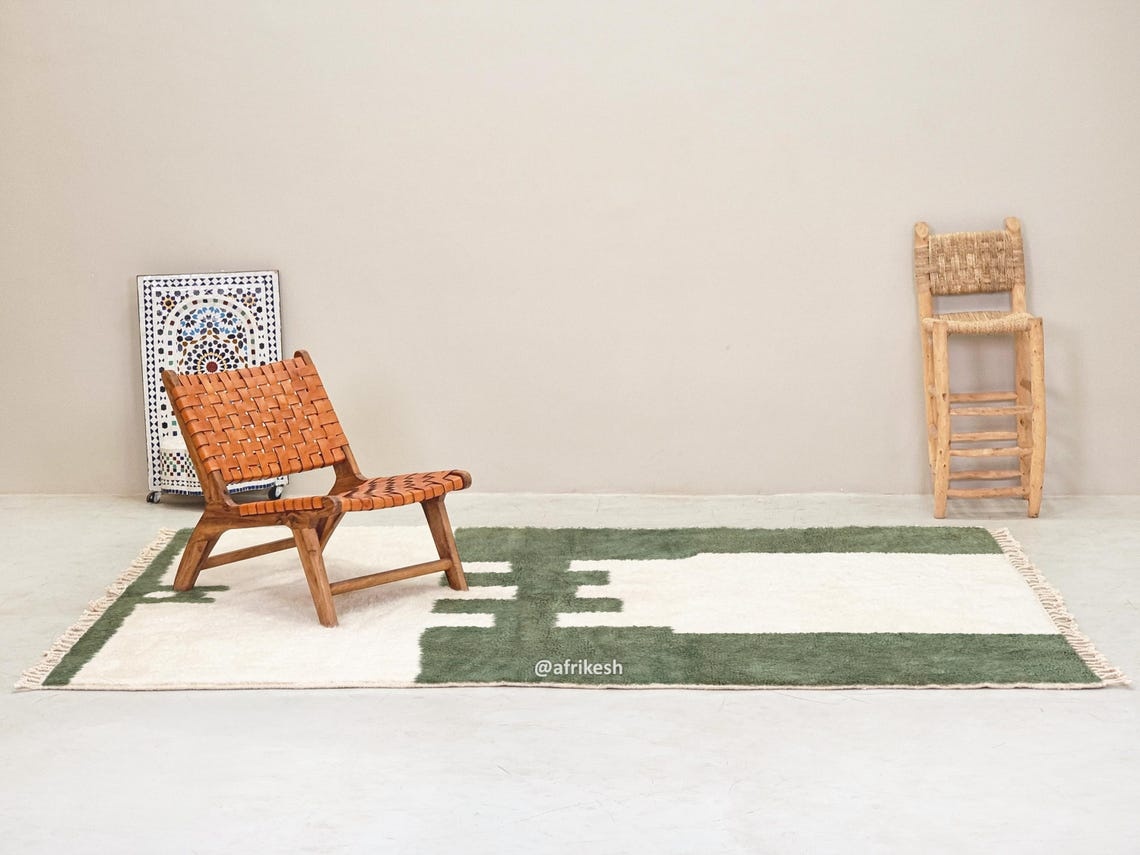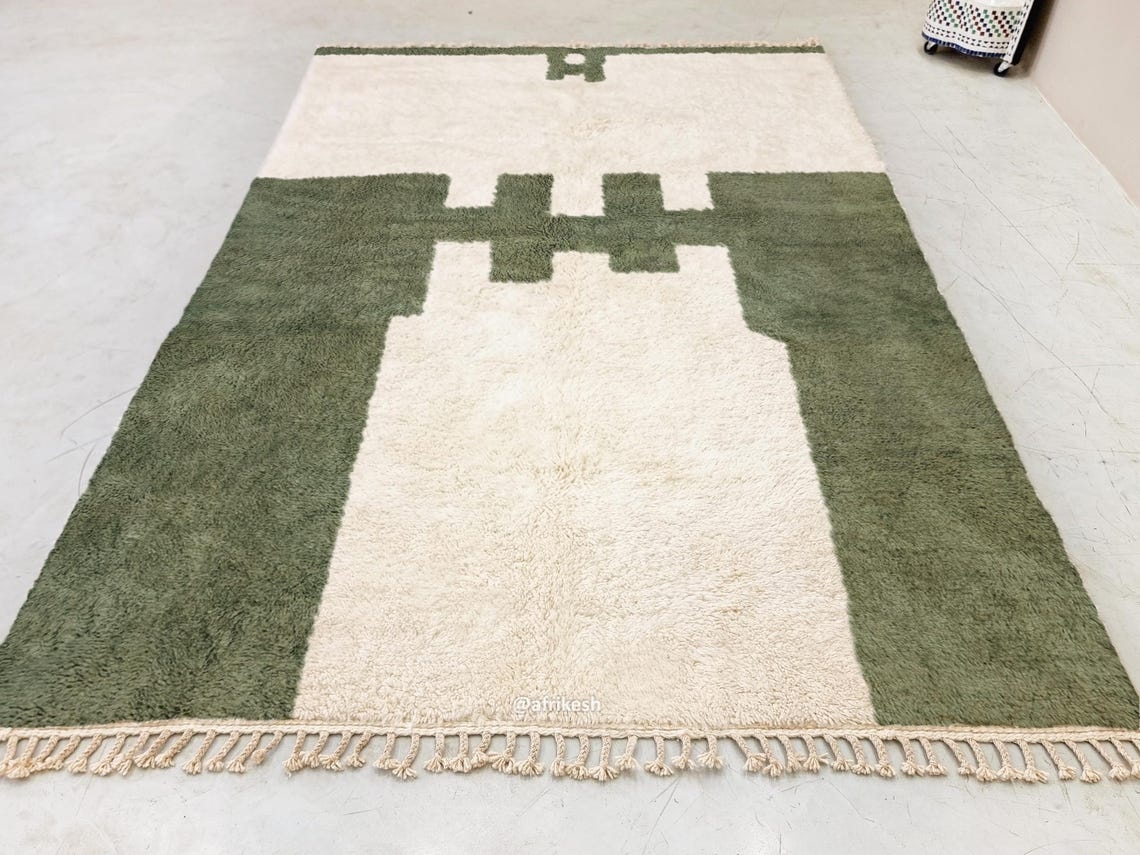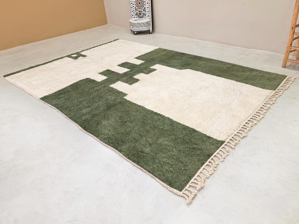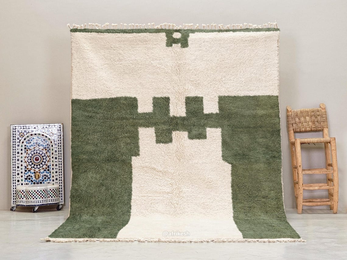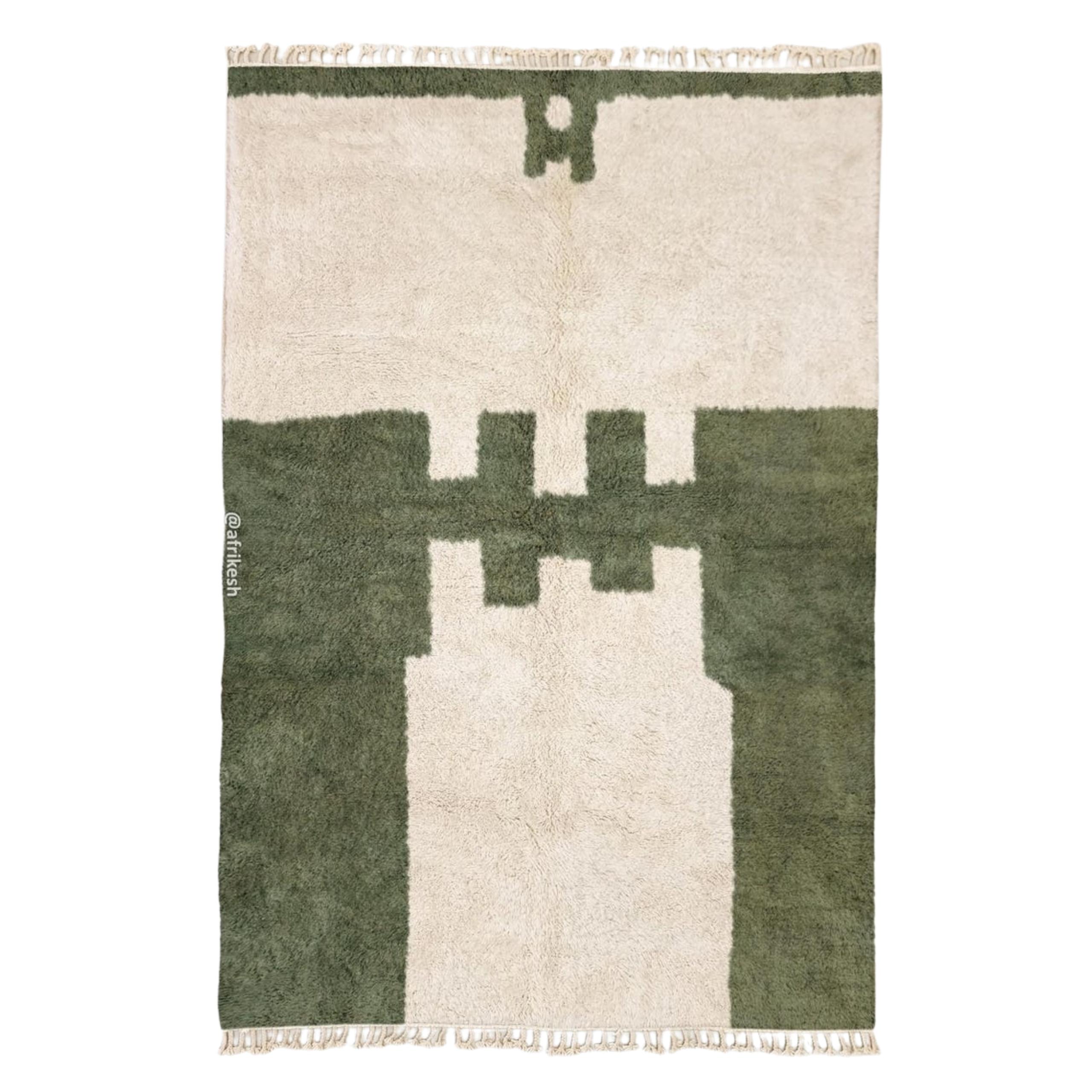 RANYA –  Beni Ourain Abstract Rug | Green & White Rug -Custom sizes