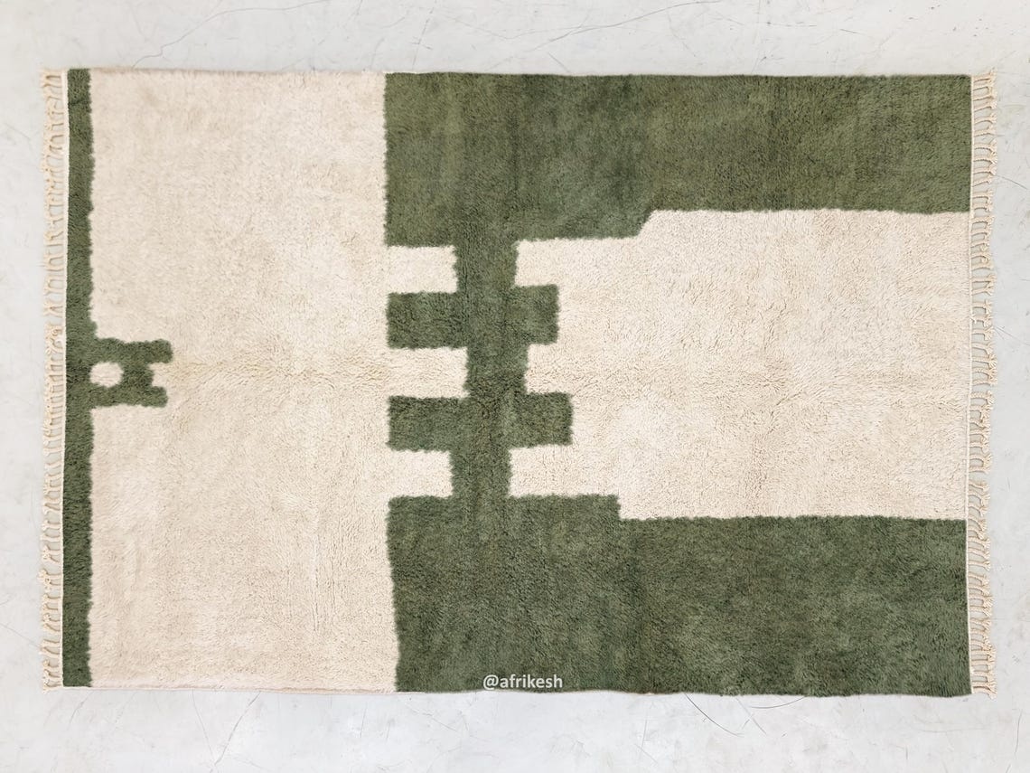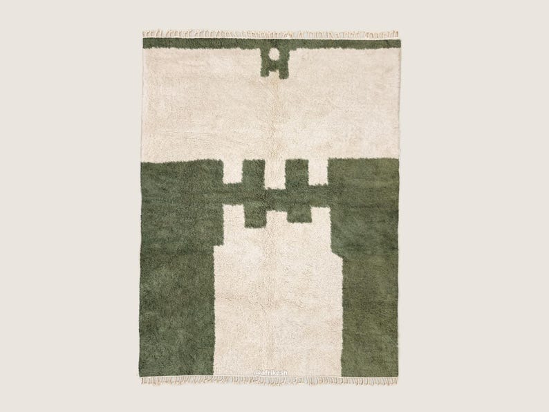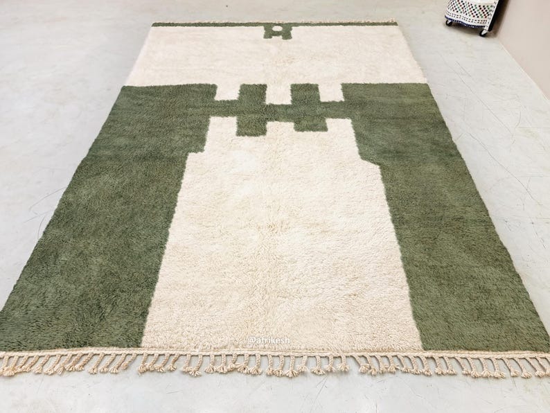 Beni Ourain Abstract Rug | Green & White Rug -Custom sizes