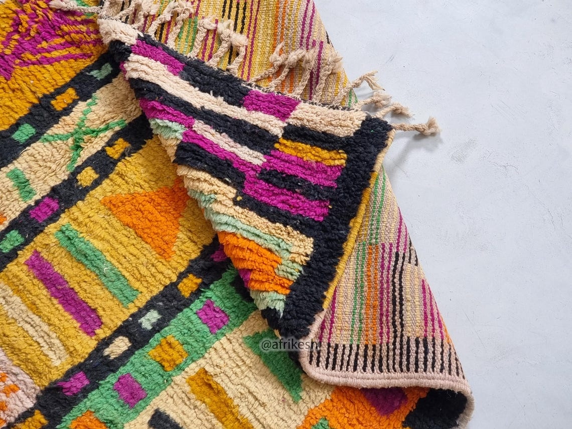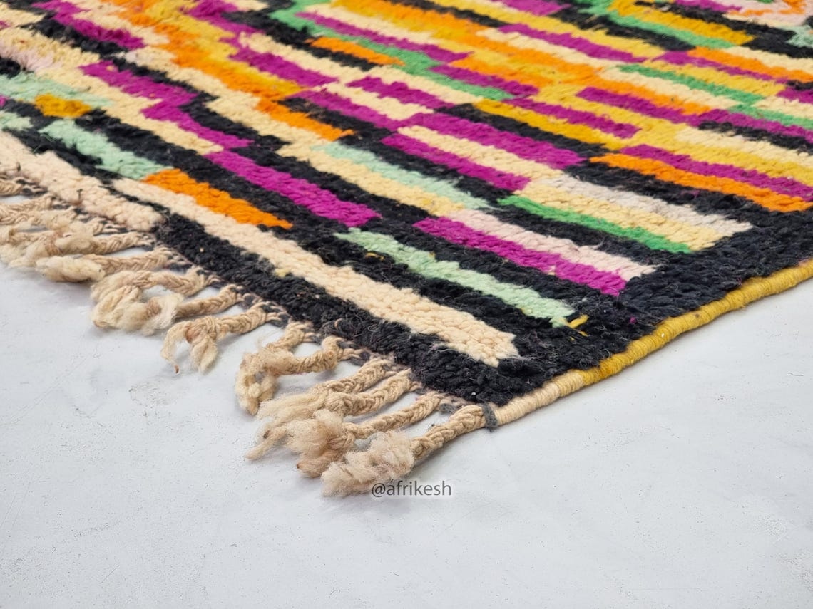 Boujaad rugs, originating from the eponymous region in the Middle Atlas Mountains of Morocco, are captivating expressions of traditional craftsmanship. Known for their vibrant colors, intricate geometric patterns, and a distinctive use of red and pink hues, Boujaad rugs exude warmth and cultural richness. These handwoven gems often feature asymmetrical designs, reflecting the weaver's personal creativity within the framework of age-old techniques. A Boujaad rug is not merely a floor covering; it's a testament to the artisan's skill, the region's heritage, and the vibrant spirit of Moroccan craftsmanship.