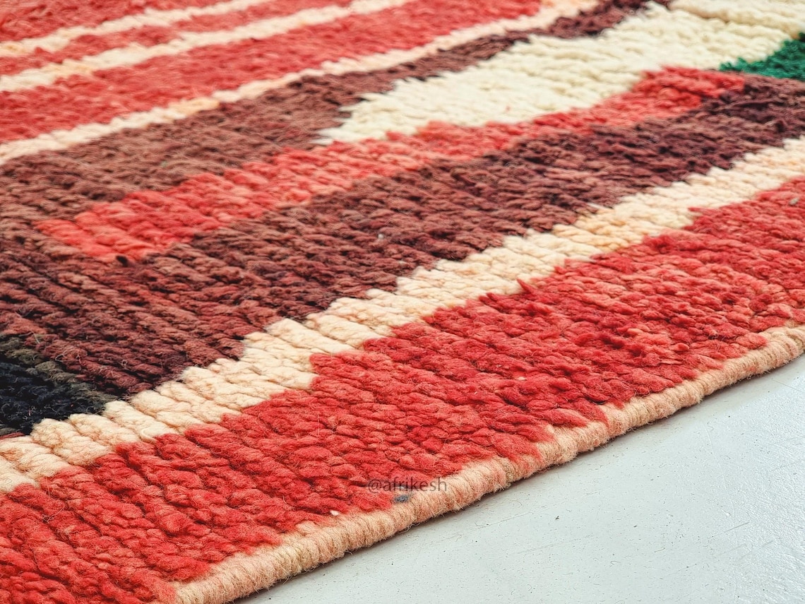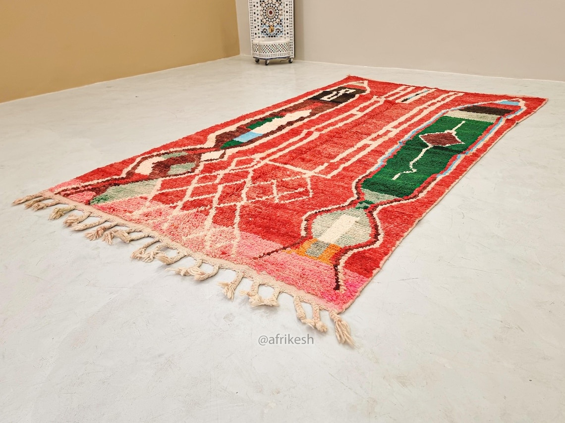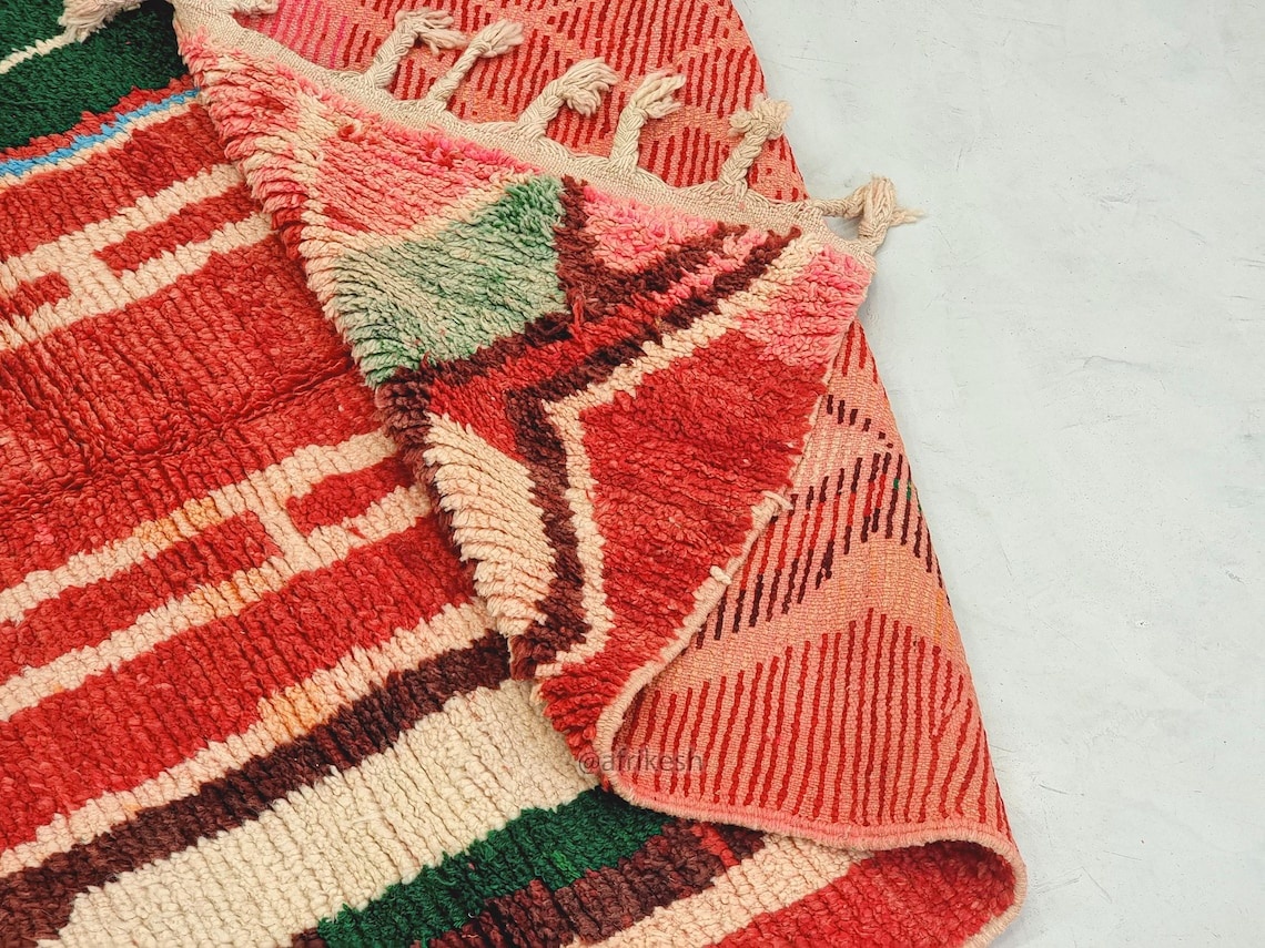 Boujaad rugs, originating from the eponymous region in the Middle Atlas Mountains of Morocco, are captivating expressions of traditional craftsmanship. Known for their vibrant colors, intricate geometric patterns, and a distinctive use of red and pink hues, Boujaad rugs exude warmth and cultural richness. These handwoven gems often feature asymmetrical designs, reflecting the weaver's personal creativity within the framework of age-old techniques. A Boujaad rug is not merely a floor covering; it's a testament to the artisan's skill, the region's heritage, and the vibrant spirit of Moroccan craftsmanship.