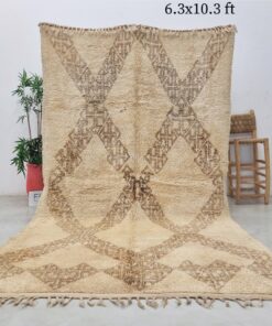 Beige And Brown Beni Ourain Rug – Vintage Carpet 6×10