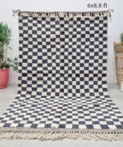 Gray And White Checkered Rug – Beni Ourain Carpet 6×8