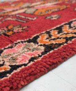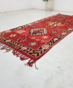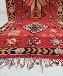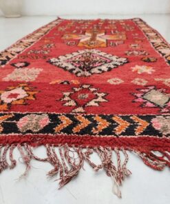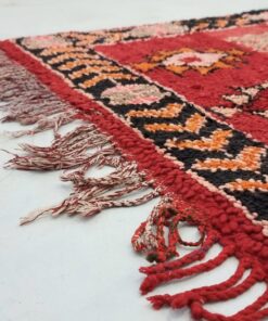 Beni M'Guild rugs, originating from the Beni M'Guild tribe in the Middle Atlas Mountains of Morocco, are striking examples of traditional Berber craftsmanship. These handwoven rugs are characterized by their deep, bold colors, intricate geometric patterns, and the use of symbolic motifs that convey the tribe's cultural stories. Often featuring a central composition surrounded by borders, Beni M'Guild rugs showcase the weaver's artistry and attention to detail. With a plush pile and a blend of rich, earthy tones, these rugs not only add warmth and texture to a space but also serve as timeless pieces that embody the heritage and creativity of the Beni M'Guild tribe.
